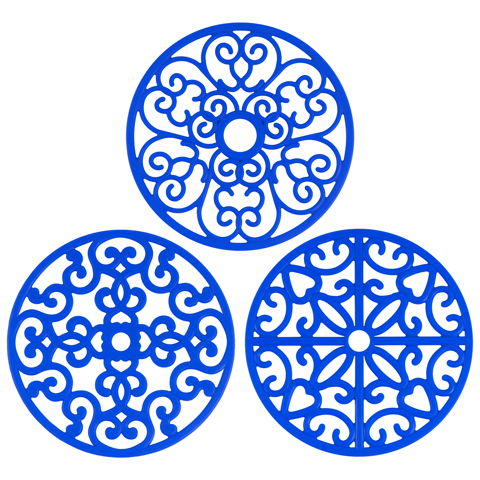 - Easy to Clean and Store - Simply wash this silicone trivet set with your hands when it need to be washed. These blue Kitchen Trivets are also safe on the top shelf of the dishwasher. The hollow design can be easily hang on the wall.